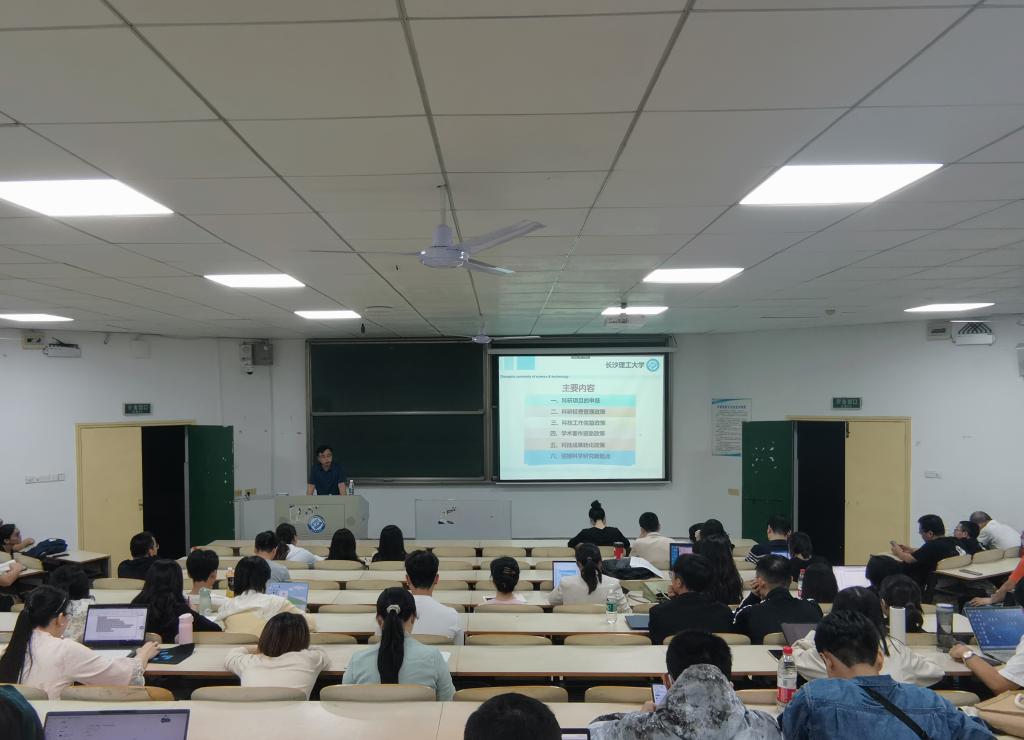 9月21日晚,在金盆岭校区6教409教室,伟德科技处副处长胡宏伟教授应邀以“立足新起点 了解新政策 推动新发展”为题,为2023年教师岗前培训班作科研管理与科研能力提升专题讲座。人事处相关工作人员及全体培训学员参加了讲座。