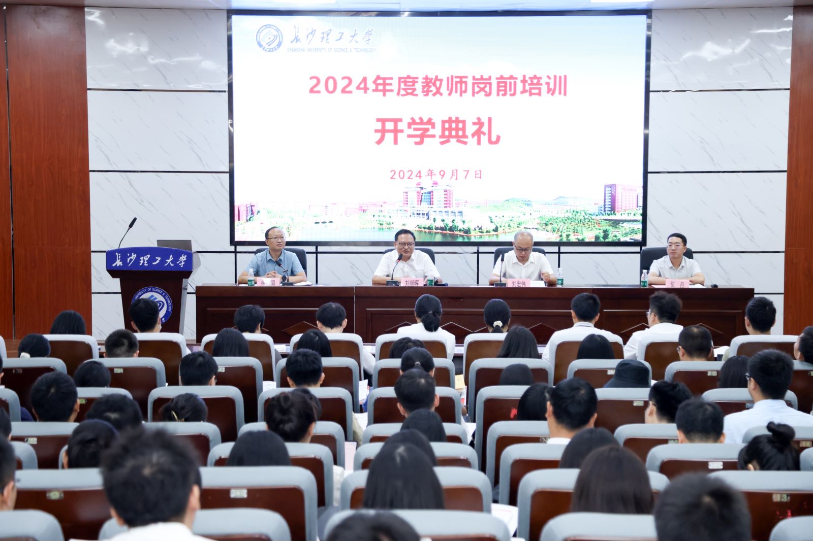 9月7日上午,伟德2024年新进教师岗前培训开学典礼在金盆岭校区四号教学楼报告厅举行。学校党委委员、副校长刘朝晖出席讲话并讲授第一课。人事处处长(教师工作部部长)刘宏伟等人事处相关负责人、138名培训班学员参加开学典礼。开学典礼由人事处副处长(教师工作部副部长)徐欣国主持。