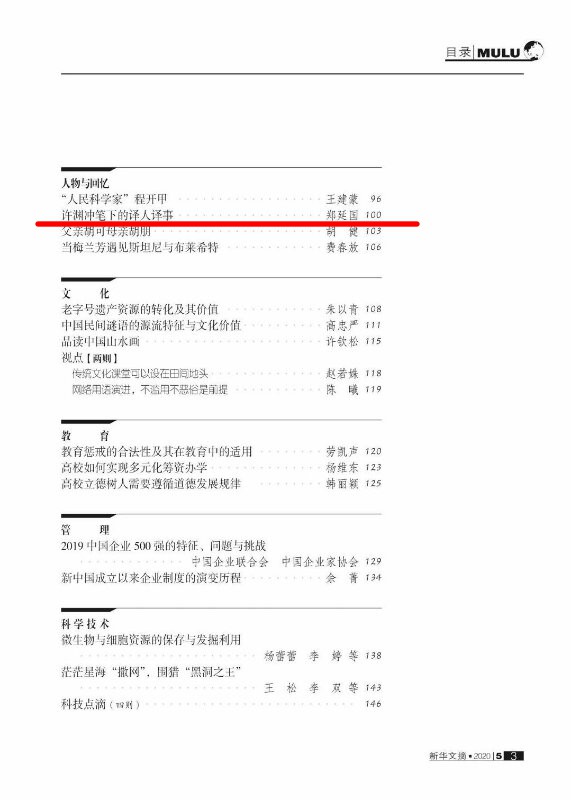 近日,伟德外国语学院郑延国教撰写的《许渊冲笔下的译人译事》一文,原发表于“反映中国知识界、文化界思想律动和人文关怀,在思想文化领域有较大影响”的刊物《书屋》2019年第12期,被国家权威转载刊物《新华文摘》2020年第5期全文转载。
