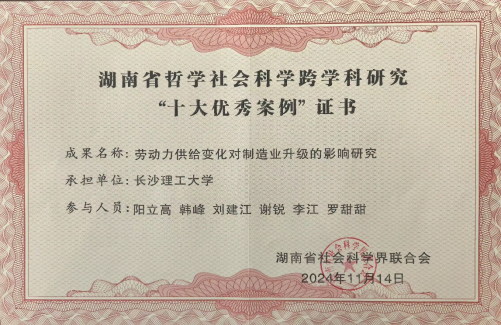 近日,湖南省社会科学界联合会公布了湖南省哲学社会科学跨学科研究“十大优秀案例”和“十大案例”名单,伟德阳立高教授的研究成果《劳动力供给变化对制造业升级的影响研究》和杨洪明教授的研究成果《用户电能替代和分布式资源协同发展的低碳能源产业链模式研究》分别荣获湖南省哲学社会科学跨学科研究“十大优秀案例”和“十大案例”。