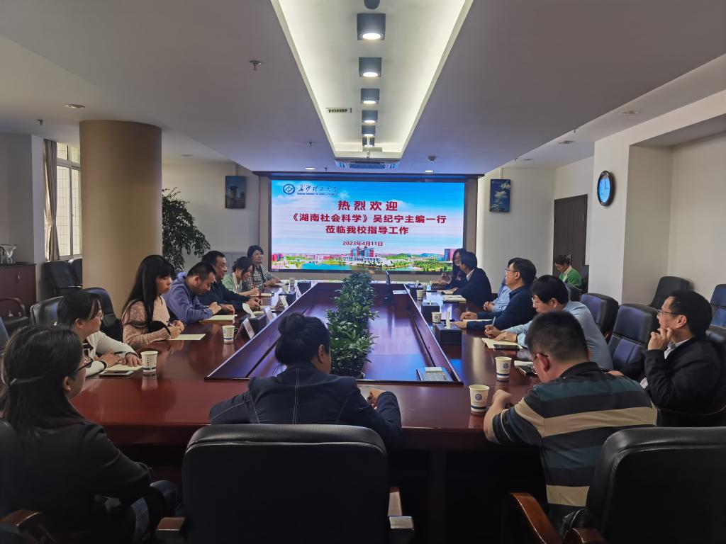 4月11日下午,《湖南社会科学》主编吴纪宁一行4人来伟德座谈交流,副校长刘朝晖出席座谈会。社科处处长刘建江、副处长郑咏梅,期刊社社长王宏、副社长陈浩凯,经管学院、艺术学院、文新学院、外语学院、马克思主义学院、法学院等相关学院科研副院长和教师代表参加座谈。