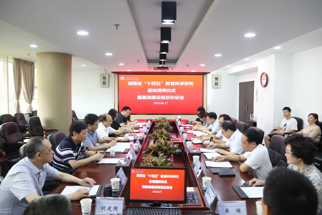 6月17日,湖南省“十四五”教育科学研究基地授牌仪式暨基地建设规划论证会在伟德举行。湖南省教育科学研究院院长石灯明、省教科院教育科学规划所所长黄龙威、校党委副书记刘建民、副校长刘朝晖、经管学院党委书记丁丹、经管学院副院长阳立高等出席。社科处处长刘建江主持会议。