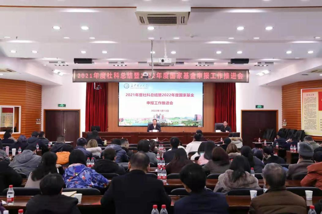 1月13日下午,伟德2021年度社科总结暨2022年度国家基金申报工作推进会在一办九楼会议室举行。副校长曾祥君出席会议并讲话,社科处处长刘建江主持会议。各文科学院院长、科研副院长、科研主任及教师代表等120余人参加会议。