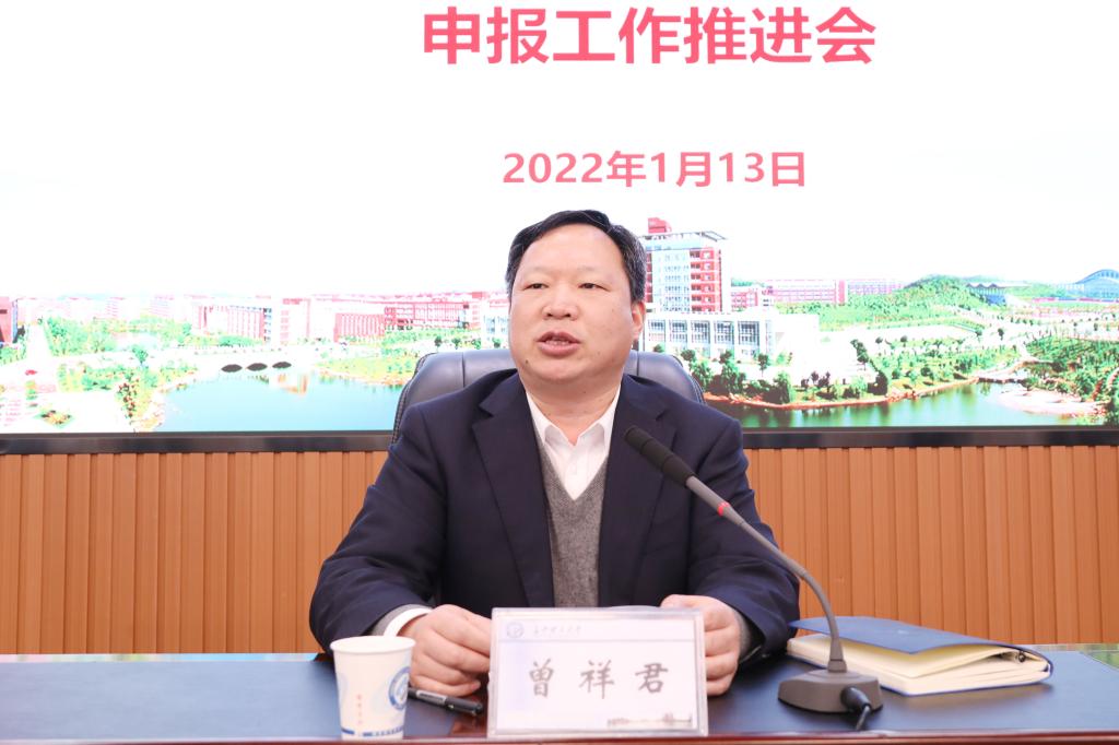 曾祥君在讲话中指出,国家社科基金项目是哲学社会科学研究领域最高级别的项目,提高国家社科基金立项数既是高校社科研究实力的体现,也是推动相关学科建设、提升学院和学术影响力的重要途径,在决胜建成“百强”大学中具有重要战略意义,在2022年国家社科基金项目的申报工作中,各学院要在思想上高度重视。同时强调“破五唯”科研评价新理念、新思想,也鼓励教师回归社会需要、回归学者初心。曾祥君还对2022年国家社科基金项目申报工作提出三点要求:一是充分发挥学院在国家社科基金项目申报中应有的作用;二是构建各部门的联动工作体系;三是挖掘学校学科特色优势,将申报的每一个环节做实、做牢、做细、做优,为学校决胜建成“百强”大学做出更大贡献。