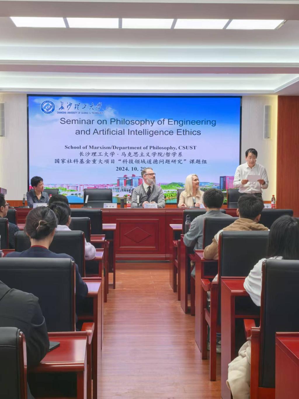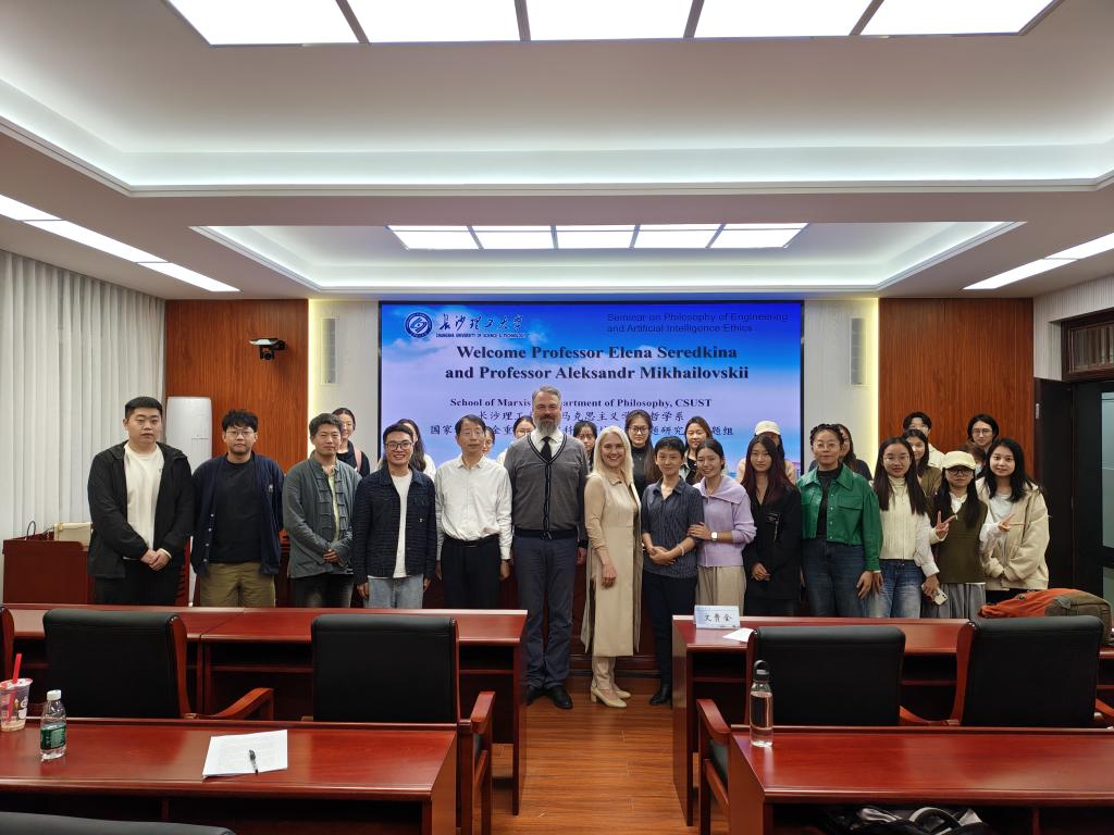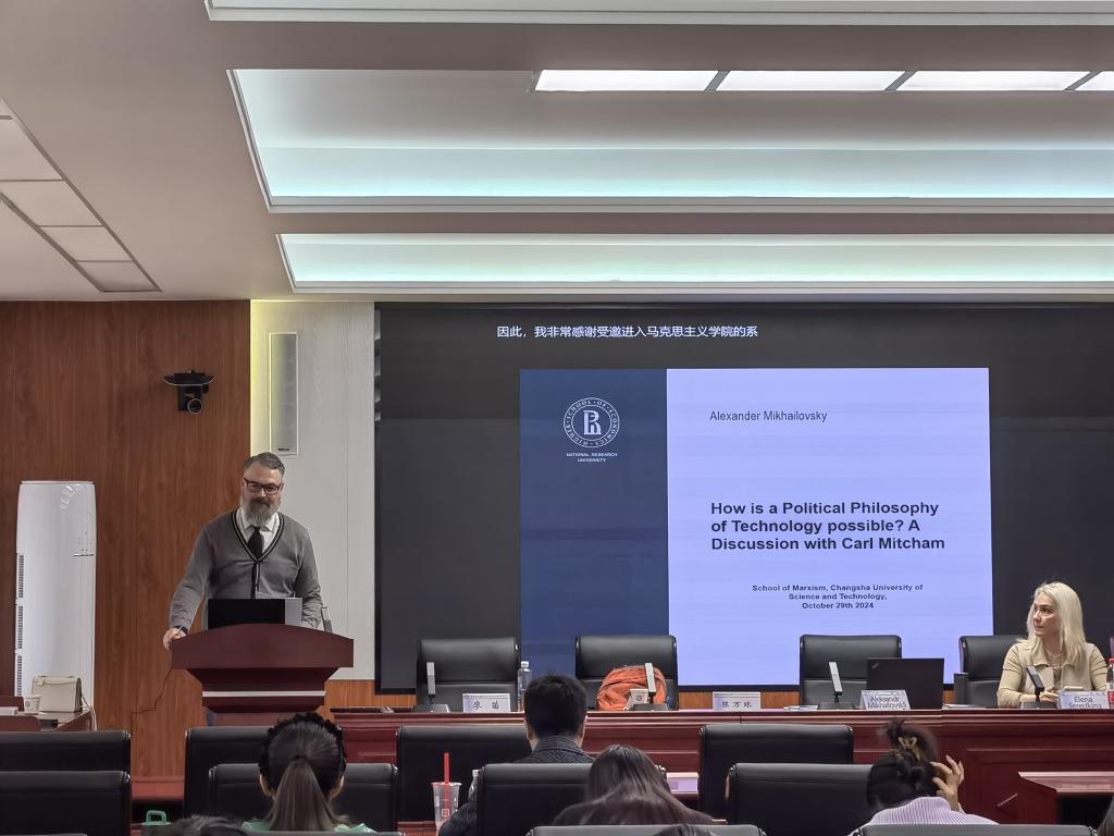 2024年10月29日下午,俄罗斯彼尔姆国立理工大学(Perm National Research Polytechnic University)Elena Seredkina教授和俄罗斯国家研究型高等经济大学(National Research University Higher School of Economics)Aleksandr Mikhailovskii教授来到马克思主义学院,在伟德云塘校区文科楼B501会议室围绕 “工程哲学与人工智能伦理”议题分别作了“哲学家与工程师的合作:德国、俄罗斯与中国的比较研究”“技术的政治哲学何以可能”的主题学术报告。本期学术工作坊由马克思主义学院与国家社科基金重大项目“当代科技领域道德问题研究”课题组共同发起,院党委陈万球书记、文贵全副院长,廖苗副教授、章雁超博士等学院教师和哲学专业30余人参加,湖南师范大学胡景谱老师、王克宁博士、中南大学曹鹏博士参加了本期工作坊。