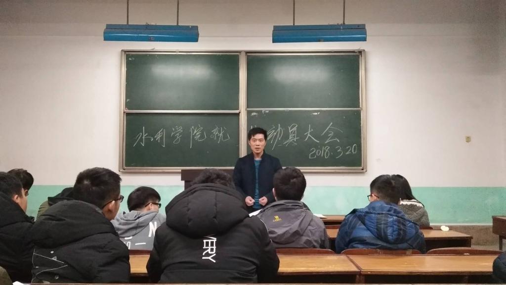 3月20日晚上,水利工程学院在金盆岭校区3教115室举行就业动员大会,会议由学院就业专干贺志琼主持,2018届全体未就业毕业生参加了会议。