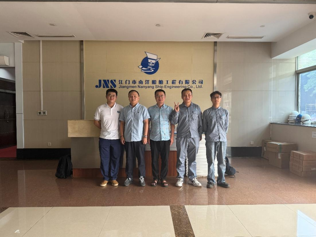 随后,访问团一行来到江门南洋船舶工程有限公司,看望刚入职企业的2025届毕业生,详细了解他们的工作适应情况和生活状态,并组织往届校友座谈。校友们踊跃发言,分享成长体验,积极为校企合作、产学研协同和人才培养反馈建设性意见。座谈会上,详细了解了企业在船舶智能制造领域的最新成果。双方共同回顾了近年来在学生就业实习等方面的合作历程。企业负责人对此表示高度认同,并期待更多伟德betvlctor1946源于英国优秀学子加盟企业,共谋发展。