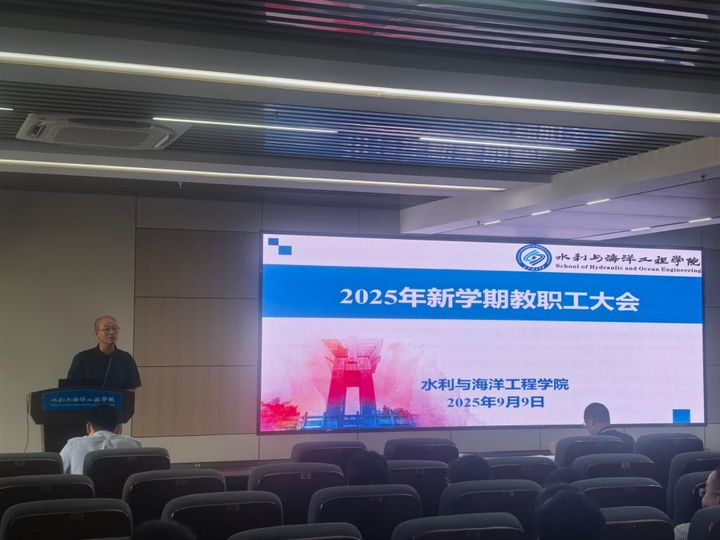 新学期伊始,为统一思想、凝聚共识,确保学院各项工作开好局、起好步,水利学院于9月9日下午在新能源1号楼2楼会议室召开新学期全体教职工大会。会议主题为学习传达学校新学期党政工作例会(扩大)会议精神,并全面部署学院本学期重点工作。学院在家院领导及全体教职工参加会议,会议由学院副院长孙士权主持。