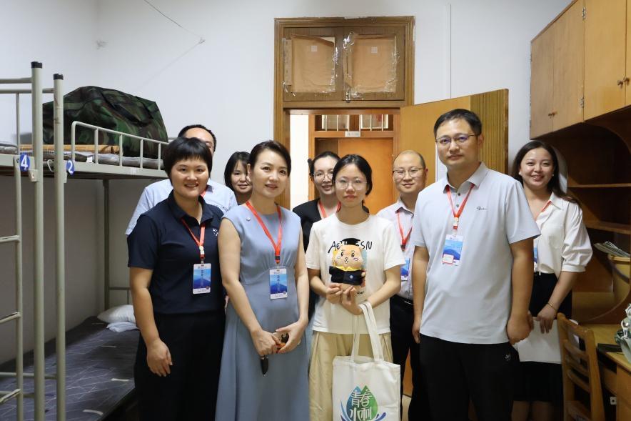 为帮助新生更快地融入水利大家庭,在迎新期间,院党委书记喻玲娜、院长陈杰,副书记银波,副院长孙士权、伍志元在新生辅导员王正博、王祎的带领下深入走访新生宿舍。在走访过程中,学院领导与新生亲切交谈,话语间满是关怀与鼓励,向新生们开启人生新旅程表示祝贺,勉励他们珍惜学习时光,牢牢把握学习良机,充分利用学校和学院的优质资源,努力提升自身综合素质,实现全面发展,在新的人生舞台上绽放出最耀眼的光彩。同时,学院领导还贴心地为报到当天过生日的新生送上精心准备的文创礼品和暖心祝福,让新生在异乡也能感受到水利大家庭的温暖与关怀。