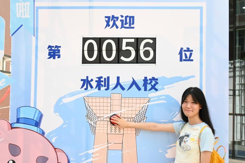 本次迎新打卡区以“海洋蓝”为主色调,巧妙融合学院特色元素,设计新颖、寓意深远,吸引了众多新生及家长纷纷驻足合影留念,记录这难忘的瞬间。现场还特别设置了“新生计数互动牌”,当新生轻轻按下按钮,牌面数字便随之翻动,这一充满创意的设计,极大地增强了入学的仪式感与趣味性,让新生在欢乐中开启大学生活。