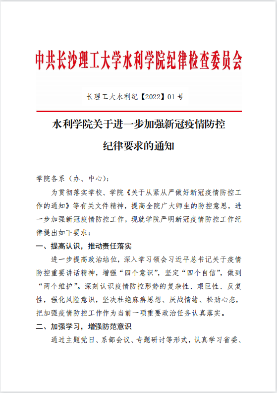 水利学院关于进一步加强新冠疫情防控纪律要求的通知