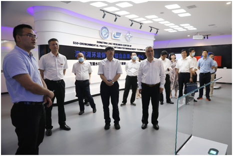 蒋昌波首先向中建五局集团领导介绍了洞庭湖的概况、正面临在水资源、水环境、水生态、水管理及水文化等方面的机遇与挑战,随后介绍了洞庭湖研究中心的建设历程、主要研究方向及近期洞庭湖在水生态保护方面取得的成效。
