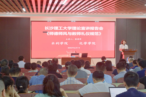 6月7日下午,副校长蒋璟萍在工三A307为水利与环境工程学院和化学化工学院全体教师开展理论宣讲,宣讲主题为《师德师风与教师礼仪规范》。
