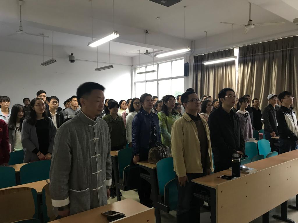会议开始,全体师生跟随大会现场起立。习近平同志代表十八届中央委员会向大会作了主题为“不忘初心,牢记使命,高举中国特色社会主义伟大旗帜,决胜全面建成小康社会,夺取新时代中国特色社会主义伟大胜利,为实现中华民族伟大复兴的中国梦不懈奋斗”的报告。习近平总书记的报告立足当前,着眼长远,既有高屋建瓴的战略思想,又有切实可行的战略举措,系统回答了新时坚持和发展什么样的中国特色社会主义、怎样坚持和反展中国特色社会主义的重大问题,深刻把握了共产党执政规律、社会主义建设规律、人类社会发展规律,构建了一个科学完整的思想理论体系,是马克思主义中国化的重大理论创新成果,开辟了当代中国马克思主义发展新境界。习近平指出,在全面建成小康社会决胜阶段以及中国特色社会主义发展关键时期,本次大会的召开具有重要指导意义。习近平在报告中提出建设教育强国是中华民族伟大复兴的基础工程,必须把教育事业放在优先位置,加快教育现代化,办好人民满意的教育。