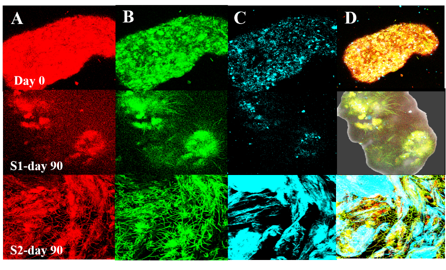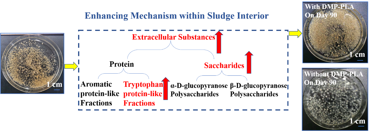 本研究引入生物可降微塑料颗粒聚乳酸进入好氧颗粒污泥系统,探索颗粒污泥理化性质,微生物群落结构及污染物去除能力的变化。研究发现,相较于对照组,实验组内污泥颗粒内含较多色氨酸类蛋白和β-D-吡喃葡萄糖多糖,有益于好氧颗粒污泥结构稳定。该成果对维护好氧颗粒污泥结构稳定提供新视角,对好氧颗粒污泥工程化应用提供案例支撑。