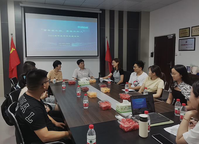 6月21日下午14:30,水利学院在工科三号楼B446召开“百年奋斗路,青春水利人”2021届毕业研究生代表座谈会,水利学院副院长李毅、党委副书记银波、科研办刘范红、科研办麦雨婷、研究生辅导员綦丽、毕业生代表参加此次会议,座谈会由綦丽主持。