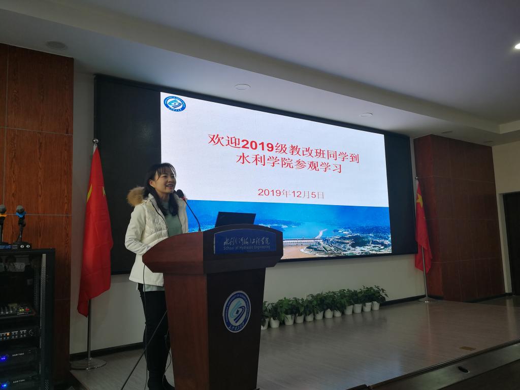 为促进教改班学生对水利类专业培养模式、专业研究领域、专业发展前沿的了解和学习, 12月5日,2019级教改班学生到我院进行了参观和学习,院党委书记喻玲娜、副院长程永舟、实验室中心主任姚宇、港航系主任夏波、水电系副主任李毅、水文系谌宏伟副教授、港航系屈科副教授参加了学习交流活动,活动由教学副院长韩时琳主持。