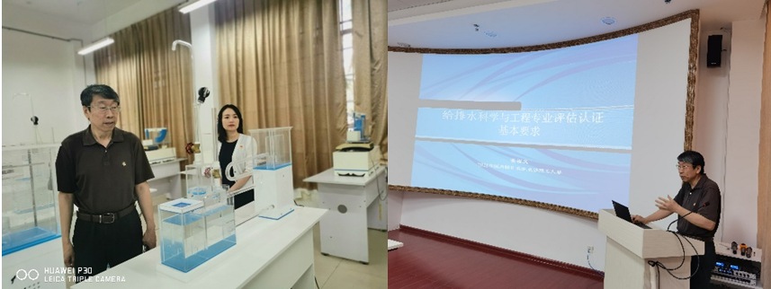 崔福义教授在喻玲娜陪同下,参观了伟德给排水科学与工程专业实验室,对实验室建设提出指导性意见。随后,在能源大楼洞庭湖实验室会议室为伟德教师做了《给排水科学与工程专业评估认证基本要求》的报告,报告针对给排水科学与工程专业的评估认证制度、工程教育认证的核心理念和评估认证工作新要求等内容进行了详细解读。