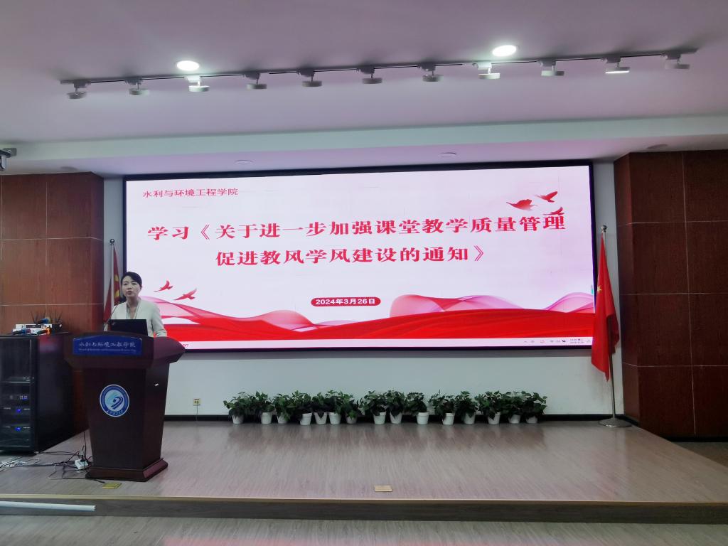 活动中,副院长盛丰通报了学校检查中发现的典型教学问题案例,重申了课堂责任意识。院党委书记领学了《关于进一步加强课堂教学质量管理促进教风学风建设的通知》和省教育厅《关于进一步加强普通高等学校教风学风建设的意见》等文件的规定,传达了省校两级部门关于加强教风学风建设的精神。要求全院教师认真学习教学质量管理规定,加强教书育人的政治意识、责任意识、规范意识和质量意识,积极推进课程教学改革,提升课堂教学能力,提高课堂教学质量。