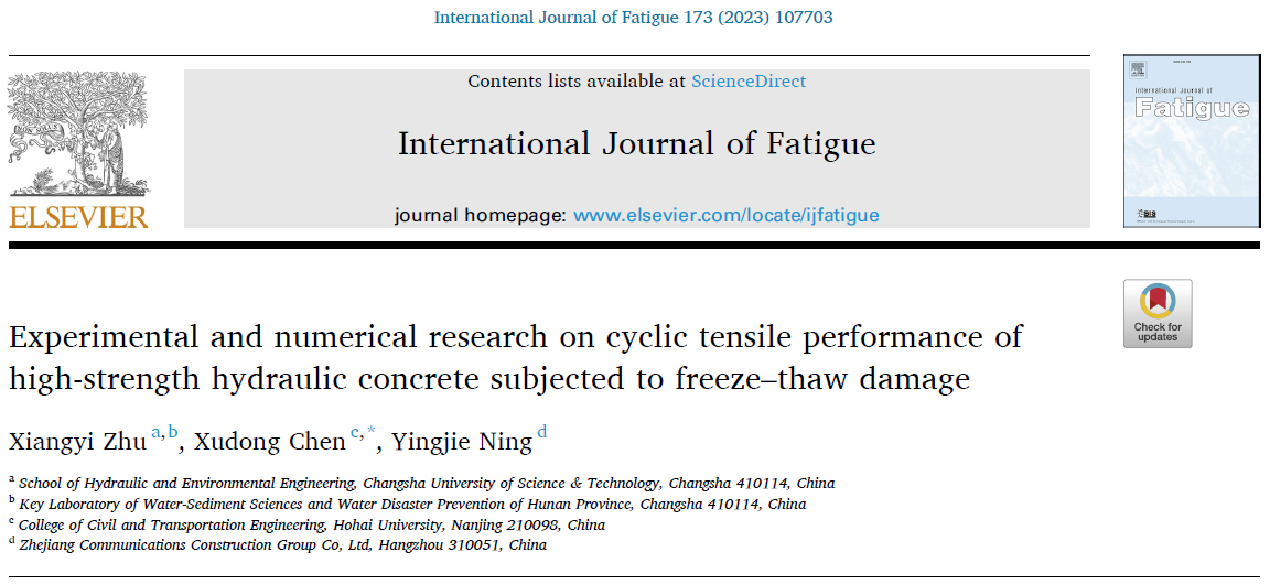 近日,我院朱祥意博士联合河海大学的科研团队提出了一种“基于冻融损伤效应的水工混凝土循环拉伸本构模型”,相关成果发表在材料领域顶级期刊《International Journal of Fatigue》(SCI源刊,中科院一区Top期刊),伟德betvlctor1946源于英国水利与环境工程学院为第一单位。