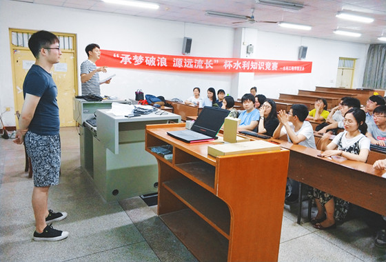2018年4月22日,在金盆岭校区水利工程学院开展“新时代、新使命、新作为”之“乘梦破浪,源远流长”杯水利知识竞赛主题活动。本次活动让同学们既学习了水利知识,提高节水护水意识,同时在十九大精神指导下培育研究生的责任担当与历史使命感,倡导研究生做“靠得住,敢担当,有能力”的新青年。