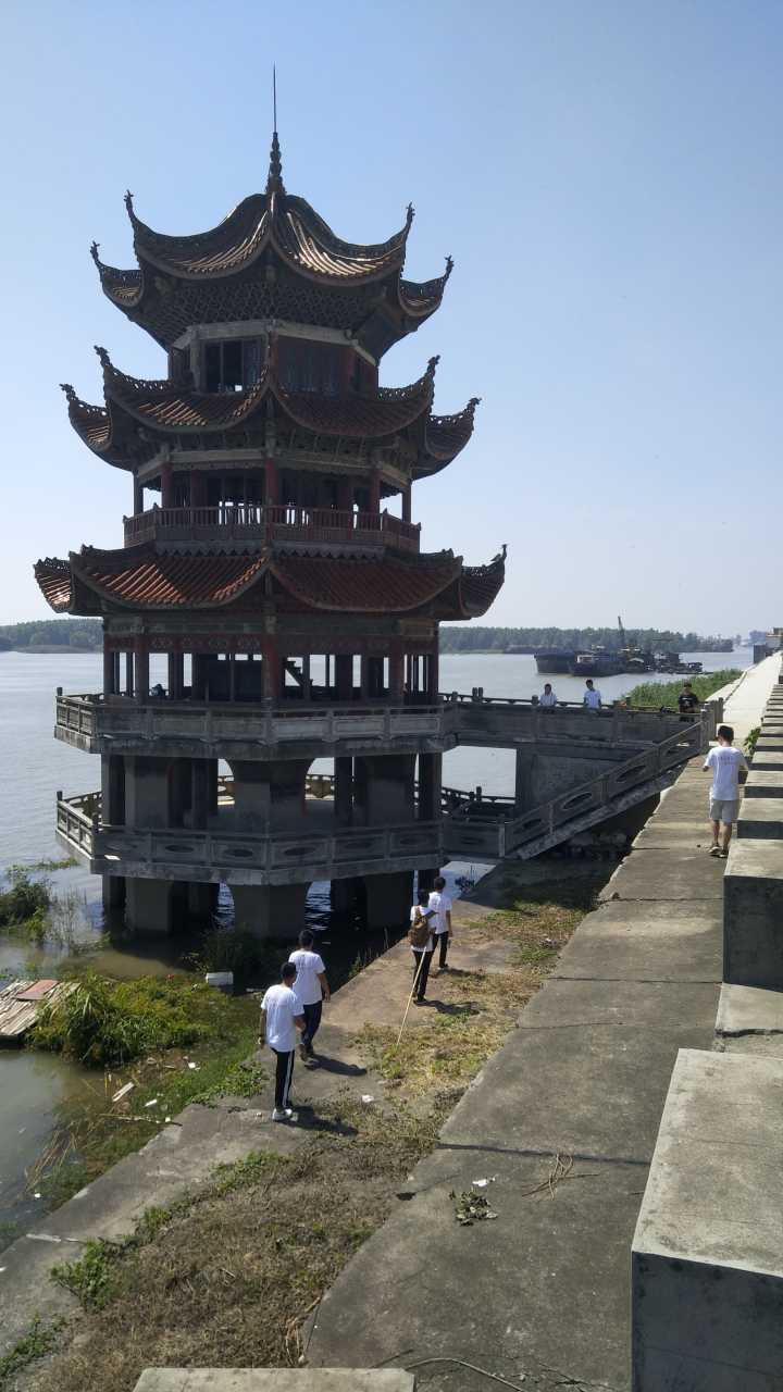 上午,团队前往沅江某造纸厂对其产生排放的废水进行取样检测。团队首先来到的是造纸厂员工家属区,这里有一个半径约400米的人造湖泊,湖水整体呈灰绿色,水质混浊,并且散发着臭味,湖面近岸有许多漂浮物,以居民日常生活垃圾为主,团队成员对黑臭水体区域进行采集取样。随后,团队继续向纸厂行进,过程中路过沅江市琼湖血吸虫病预防控制站了解了血吸虫病。来到纸厂后,团队在纸厂外的湖区对水体进行取样,测定PH,温度,测定PH,温度均为正常后,团队成员将水体采集保存,进行后续处理。团队离开造纸厂后,来到了距其200里外的洞庭阁。洞庭阁到纸厂外围的近岸湖面漂浮着许多生活垃圾,还零星分布着几株外来入侵植物 ――水葫芦,团队成员对水体进行取样保存,对水葫芦分布点进行拍照。下午团队赶赴下一个调研市区――岳阳开始新的征程。