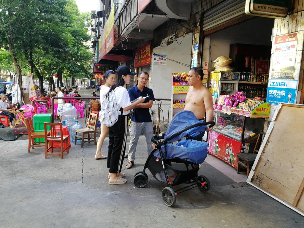 8月30日,水利工程学院赴岳阳市华容县关于洞庭湖生态文明调研团队成员在华容河广场及华容县路边店面向当地居民发放关于华容河近年来改造情况的调查问卷。