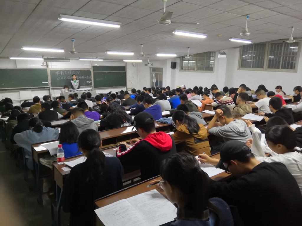 为严肃学校纪律,加强大学生思想教育,督促2018级新生了解学校规章制度,增强新生的纪律意识和规矩意识,11月4日晚,水利工程学院在金盆岭校区12教自习室组织开展了2018级新生《学生手册》考试,全体2018级新生参加。