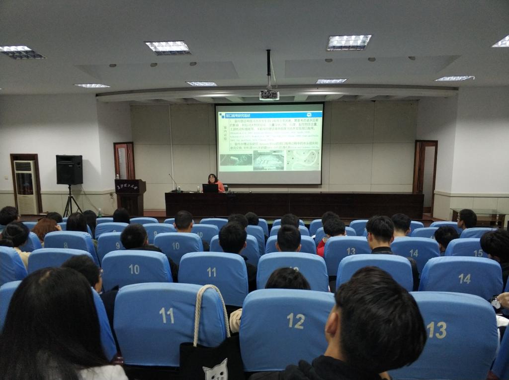 首先,吴新宇博士做了关于“弯曲河流颈口裁弯过程的试验研究”的报告。报告中,她首先为18级研究生介绍了自己的研究方向。在介绍完国内外研究进展、研究内容、试验条件和水槽试验等几个方面后,她对自己所做的试验和试验数据进行了详细地分析与讲解。通过此次报告,同学们对于弯曲河流演变过程中必然会出现的裁弯现象以及裁弯前颈口调整过程和裁弯后新河道的发展过程有了深入的了解。