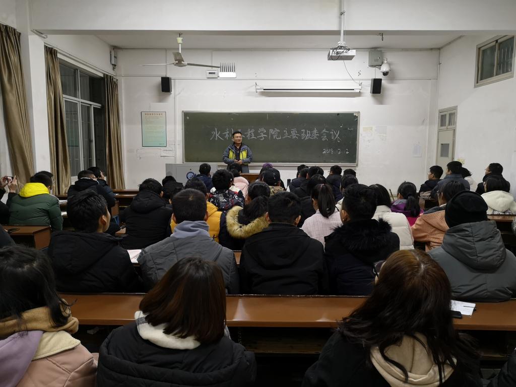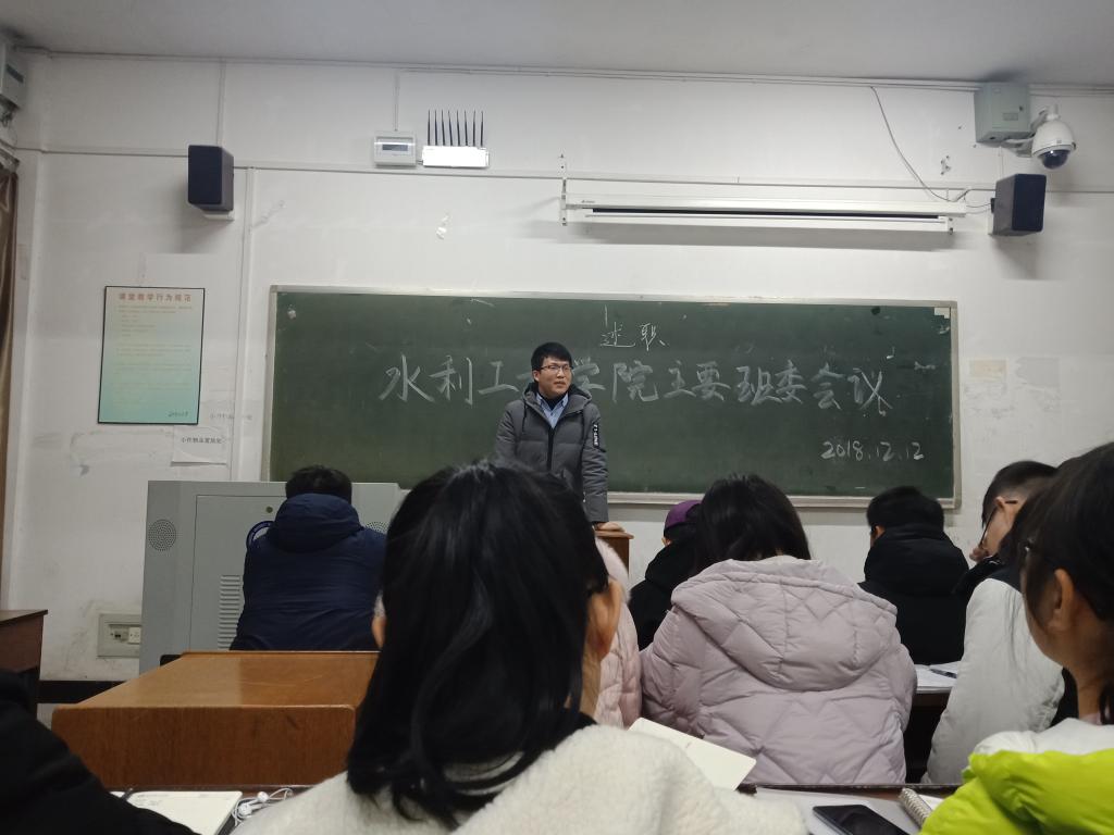 为进一步加强班级学生的组织管理工作,12月12日晚,水利工程学院2018级新生主要学生干部会议在金盆岭校区12教106教室召开。学院党委副书记王学成、新生辅导员黄远发出席会议。