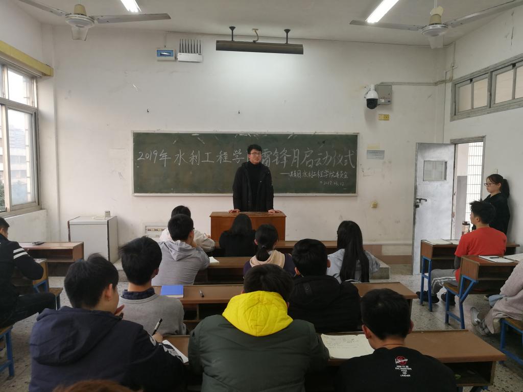 为弘扬雷锋精神,深入学习贯彻社会主义核心价值观,将雷锋精神在校园内传唱,2019年3月17日下午,水利工程学院“学习雷锋好榜样,奉献青春勇担当”雷锋月启动仪式在金盆岭校区13教学楼602教室举行。参加此次启动仪式有水利学院辅导员黄远发,2018级全体团支部。启动仪式由李沅颖主持。