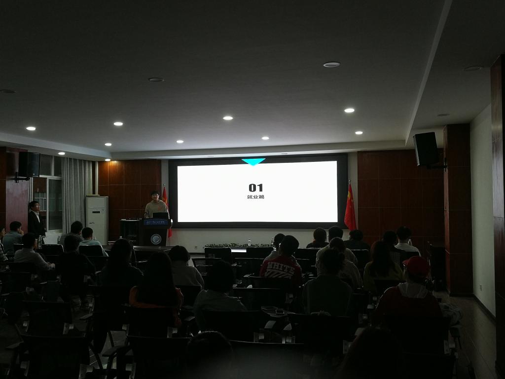 作为就业代表,王冠军以事业单位招考为主题对国家电网的招聘途径、考试相关注意事项以及工作上的基本概况进行了讲解;谭迎则就简历、求职面试、工作单位的选择和课程选择进行了深刻分析。在考研方面,袁思思结合自己的心路历程分享了考研心态调整与备考的方法;刘照馨详细地讲述了跨专业考研方面的相关事项;胡璇伊和刘慕淳从院校选择、考研准备、学习规划和学习方法上进行了分享。在现场交流中,参与同学们的疑惑得到一一解答,本次交流会落下帷幕。