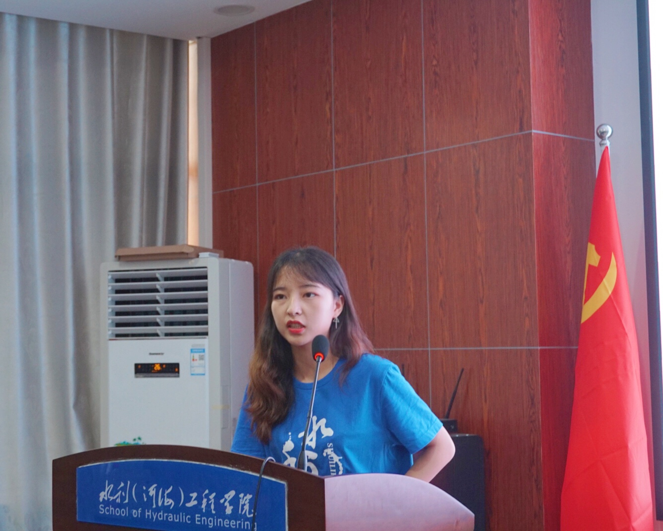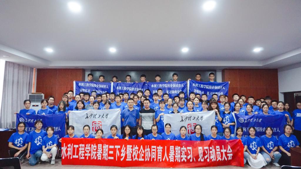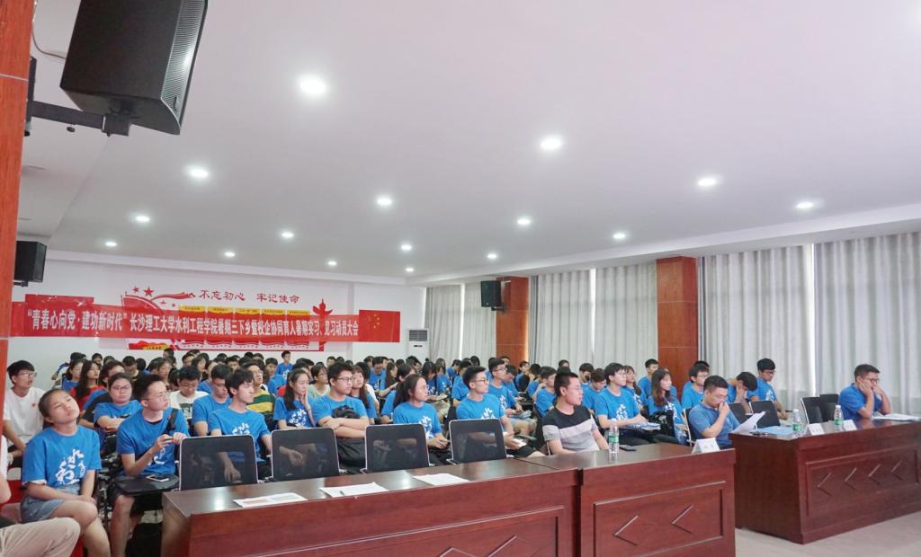 2019年7月4日下午2点,水利工程学院在云塘校区工科三号楼B319举行“青春心向党·建功新时代”暑期三下乡暨校企协同育人暑期实习、见习动员大会。出席本次大会的领导有湖南博世科华艺环保科技有限公司技术部副部长王娟、院党委副书记王学成、院长助理姚宇、院团委书记杜丘。三下乡团队代表、各支部团支书以及实习代表参加了本次会议。