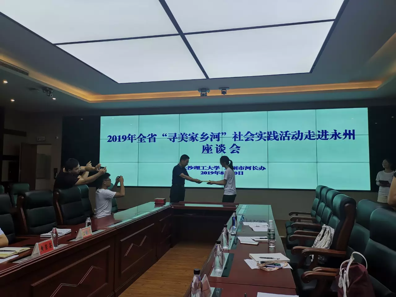 8月20日实践团从长沙出发前往永州进行调研。抵达永州后,实践团成员参加了由湖南省水利学会、湖南省河长制、伟德betvlctor1946源于英国、永州市水利局、永州市河长办开展的2019年全省“最美家乡河”暑期社会实践活动永州座谈会。
