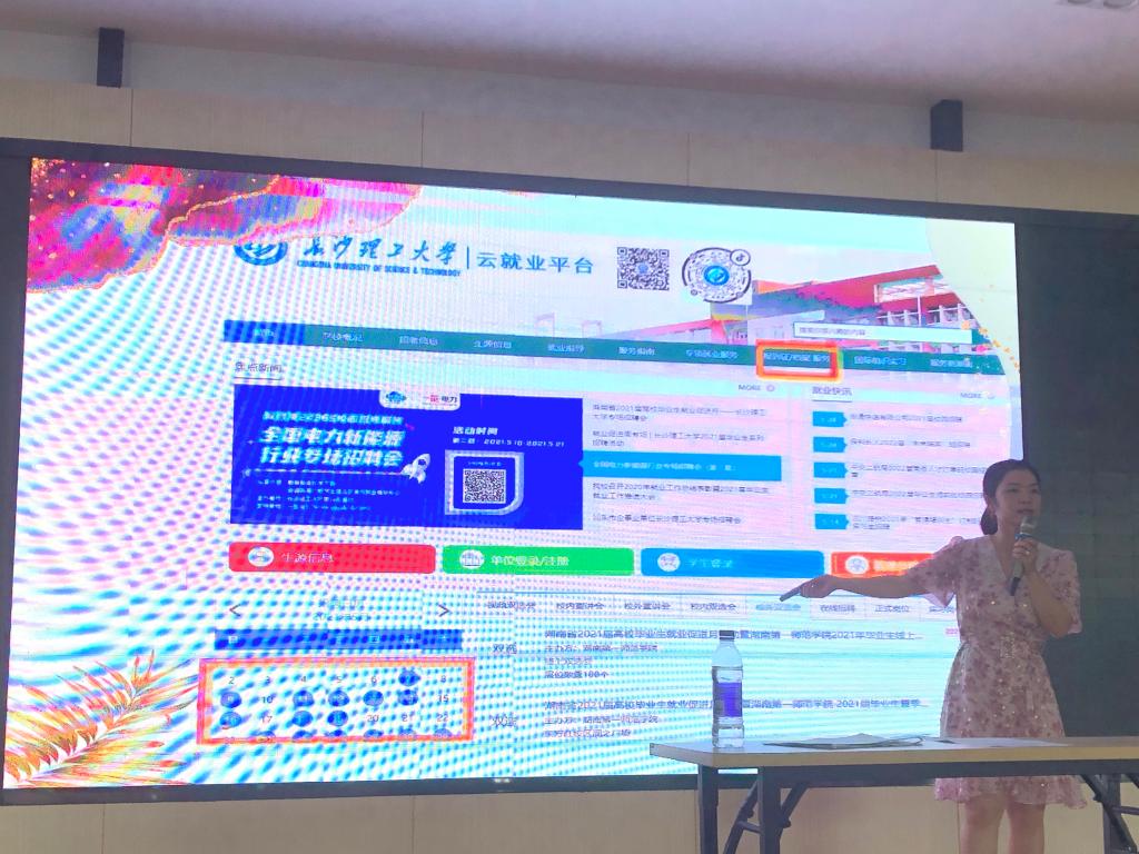 肖苹宁分析了2021届毕业生考研和就业情况,对就业、考研、考公、考编时间安排作了梳理,并重点对就业信息的获取、就业技巧和简历制作、就业单位的选择、三方就业协议的签订、档案材料的填写等方面内容和相关注意事项进行了详细讲解,要求大家高度重视即将开展的就业工作,把握好就业机会,提前做好充分准备,为早日选择到条件合适、心仪的企业奠定坚实基础。(文/包心雨 刘紫萱 图/王玉涵 黄兴宇 审/银波)