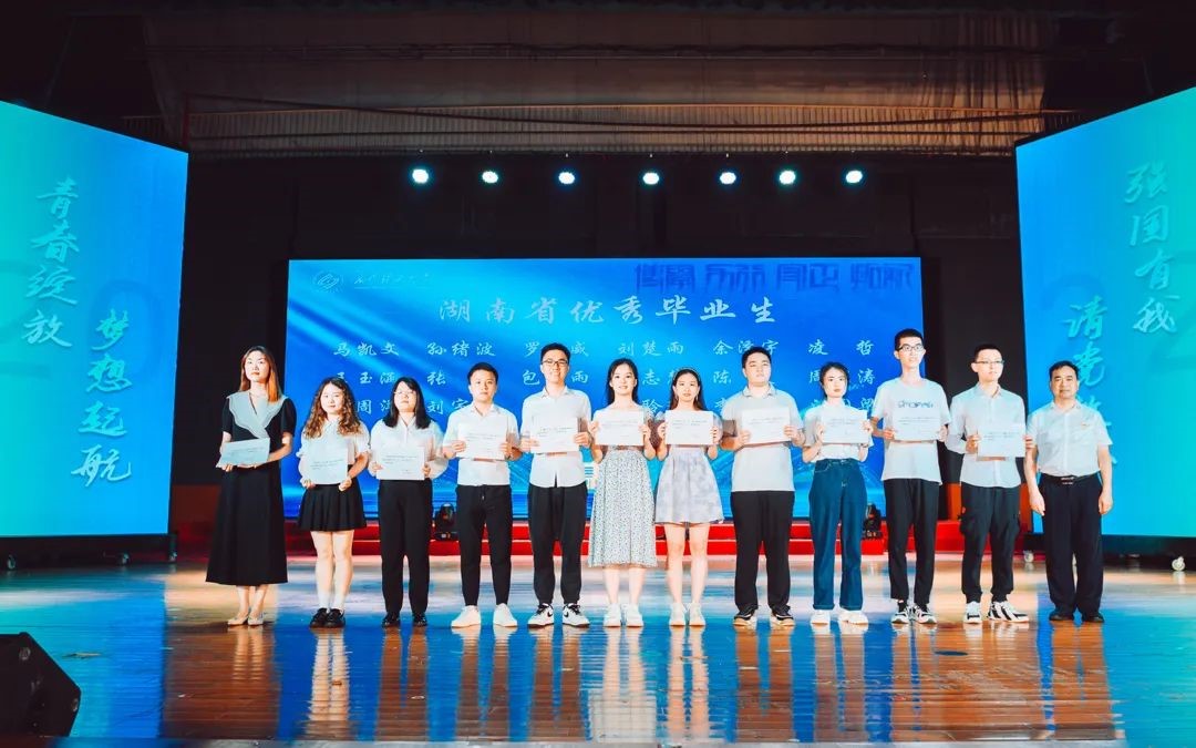 典礼上,黄创霞为湖南省优秀毕业生颁奖,激励全体毕业坚定信仰,砥砺品德,努力成长为堪当民族复兴重任的时代新人。校友中心主任郑延恒为学院2022届校友分会理事会成员颁发聘书并授旗。典礼还表彰了“自强励志类”“科技创新类”“志愿服务类”“管理人才类”等4类“校友励志奖学金”获得者,仪式之后,与会师生为毕业生赠送了精心准备的专属签章、定制文化衫等毕业礼物。