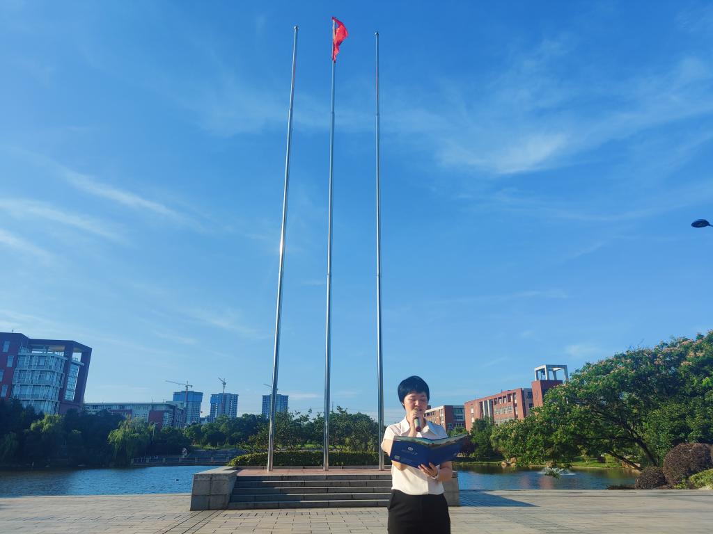 李灿辉发表国旗下的讲话,她明确作为学生党员,应在践行初心使命的同时不断弘扬伟大建党精神,坚定理想信念、厚植爱国情怀、增强人民情怀,锤炼出鲜明的政治品格,用青春的能动力和创造力激荡起民族复兴的春潮。