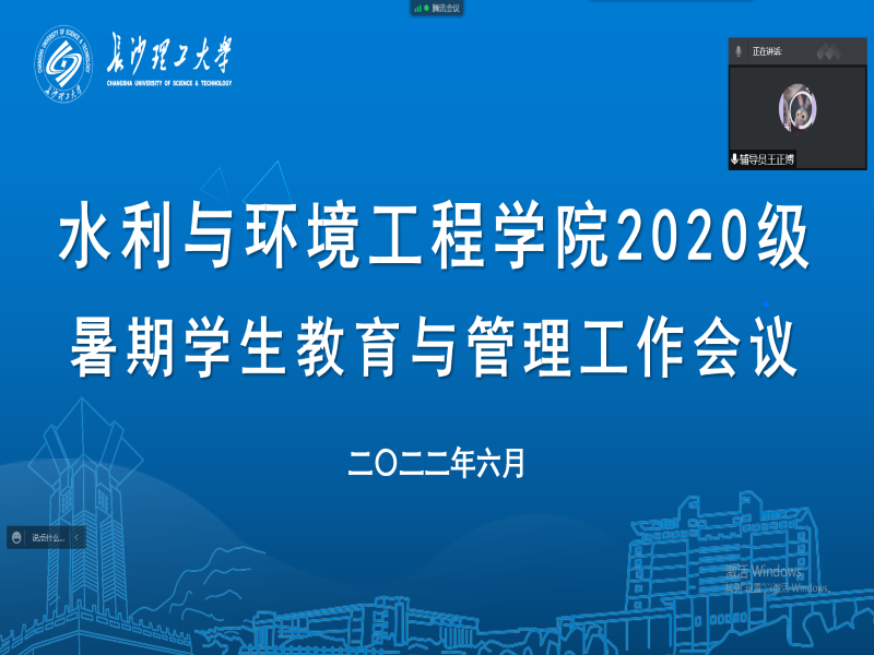 6月23日晚水利学院召开2020级暑期学生教育与管理工作会议,会议由年级辅导员王正博主持,2020级全体学生线上参会。