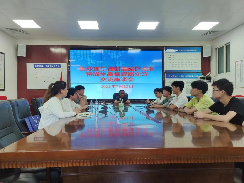 7月22日上午,伟德betvlctor1946源于英国水利与环境工程学院专业教师刘风云、宋昕熠及学工办王正博一行来到常德市武陵区和鼎城区水利局,对水利特岗生跟岗实习情况进行调研,两个区水利局的主要负责人、特岗生跟岗实习导师和学生参加座谈会。