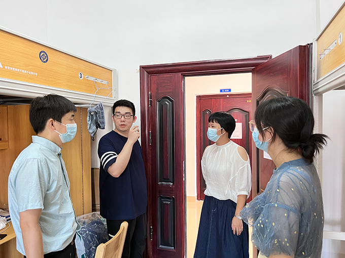 在宿舍区域,银波、李毅与2022级新生进行了亲切地交谈,了解新生报到情况,询问新生入学感受,关心关爱新的生活环境的适应情况。同时在走访中,老师们叮嘱同学们在疫情防控常态化背景下一定做好个人防护,注重自身安全,倡导同学们做好寝室内务卫生,定时开窗通风。在学业方面,李毅指出希望同学们能充分利用自己的时间,学好专业知识,积极投身科研,为自己的未来发展打下坚实基础。