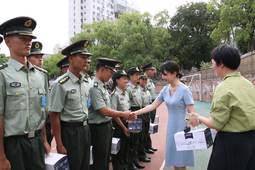 喻玲娜对参训学生克服高温天气,坚持高标准训练的精神面貌予以充分肯定。她指出,新生军训是大学的第一课,军训不仅是身体上的锻炼,更是对思想的升华、意志的磨练、心灵的洗礼。她说道“一滴水珠力量是很微小的但是长年累月地滴水却能把坚硬的石头滴穿这就是坚持的力量。”并寄语全体学生要发扬“滴水穿石”的韧劲、拼劲,劳逸结合,坚持不懈不轻易言败,不轻易服输,以最佳的身体和精神状态完成军训工作。随后,院领导一同为新生和教官发放了慰问物品。