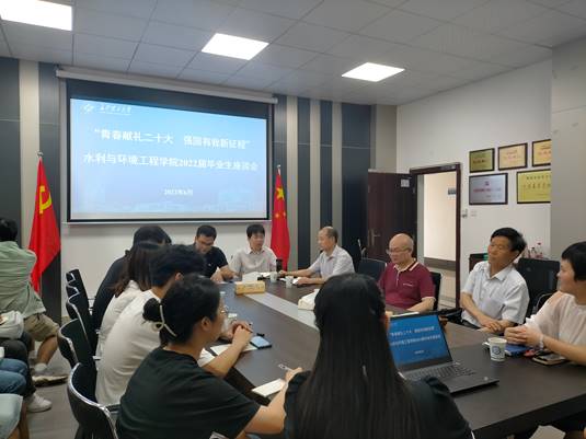 6月16日下午,水利与环境工程学院在工三B446举行2022届毕业生代表座谈会。校关工委常务副主任王乃厚,学院关工委常务副主任曾令球、院党委副书记银波、副院长孙士权、副院长邓斌、副院长李毅出席座谈会,学工办、教务办负责人,毕业生辅导员和20位毕业生代表参加。