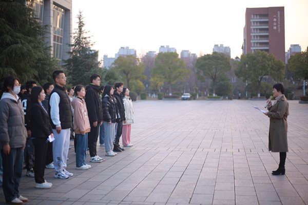 仪式开始,国旗护卫队迈着整齐的步伐,将五星红旗护送至升旗台前,全体与会人员热情激昂地唱响国歌,注视着五星红旗冉冉升起。随后,在领誓人的带领下,同学们在国旗下进行了庄严宣誓,铿锵有力的宣誓声表达了青年学子以实际行动践行誓词的决心。