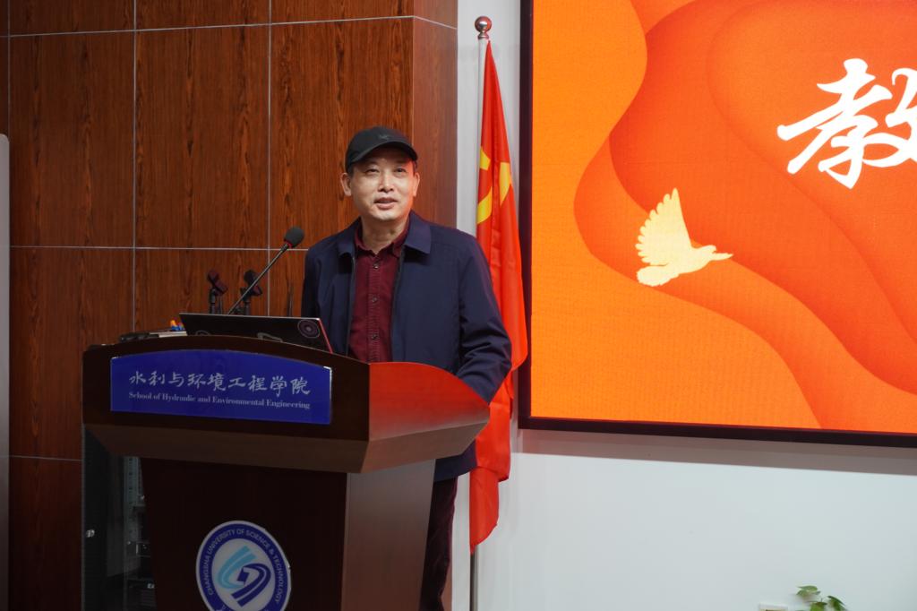刘春华作为教师代表发言,他表达了设立大禹环保奖(助)学金的初衷、由来以及对同学们的殷切期望。