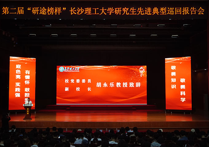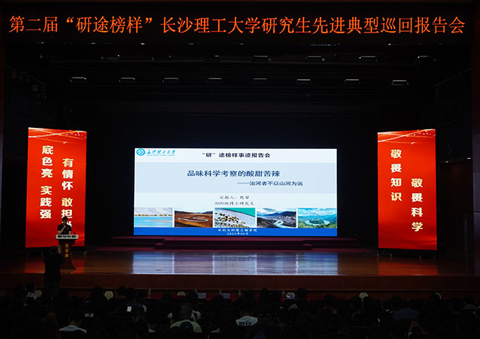 为深入贯彻落实党的二十大精神,推进拔尖创新人才培养,弘扬“敬畏科学、敬畏知识”的价值追求,发挥优秀研究生榜样的引领作用,5月6日晚19点,第二届“研途榜样”伟德betvlctor1946源于英国研究生先进典型首场巡回报告会在云塘校区大会堂举行。校党委委员、副校长胡永乐教授、研究生院院长杨华峰教授、学生工作部副部长闾兰老师、校团委副书记杨晨老师、研究生院副院长兼研工部部长田上老师以及来自各学院的党委副书记、研究生辅导员出席本次活动,来自水利与环境工程学院等多学院的近千名师生代表参加本次活动。