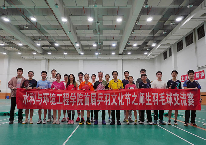 为进一步加强研究生师生交流,丰富研究生校园文化生活,5月9日晚上18:00,水利学院在云塘校区体育馆馆举行首届乒羽文化节之师生羽毛球交流赛,专业教师李诚、黄志勇、李雪淋、研究生辅导员杜丘以及20余名同学参加本次交流赛。