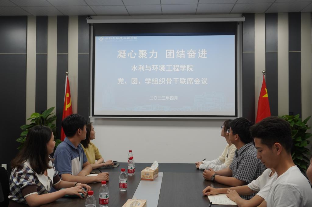 为加强党、团、学的交流互动,增进各组织间的了解,4月19日,水利与环境工程学院在工科三号楼B446召开本年度第二次党、团、学学生骨干联席会议。全体辅导员及学生党建、团委学生会、研究生会、各年级组的主要学生干部参加。