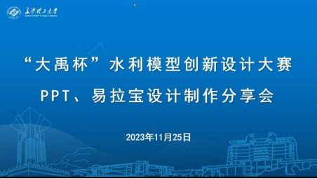 11月25日晚,水利学院举办第四届“大禹杯”水利模型ppt制作与易拉宝美化线上经验分享会。本次分享会由给排水2103班黄佳丽、港卓2201班陈坤、水利类2205班曹志华三位同学主讲,通过盲评的132个参赛小组全体参加。