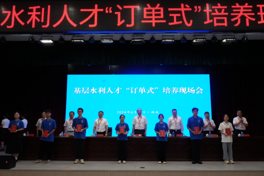 6月19日上午,在长沙召开的全国基层水利人才“订单式”培养现场会上,水利部人事司司长郭海华,湖南省水利厅党组书记、厅长朱东铁,水利部人事司副司长王健,中央组织部人才工作局一处副处长、一级调研员沈乐鸣,水利部人才资源开发中心主任王新跃,中国水利教育协会会长张明俊,北京江河水利发展基金会理事长石玉波等领导嘉宾为“江河水利专项奖学金”获得者颁奖。