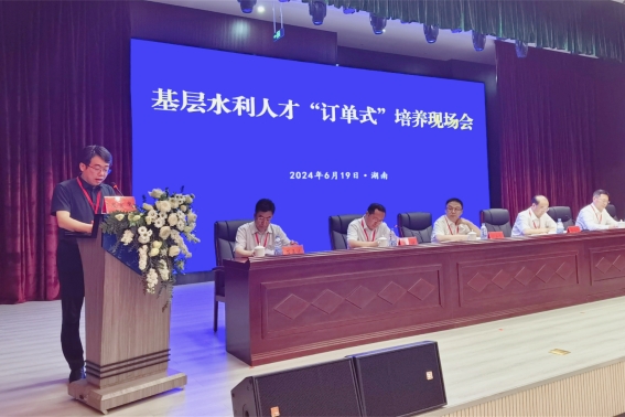 6月18日至19日,全国基层水利人才“订单式”培养现场会在岳阳市、长沙市召开。水利部人事司司长郭海华出席会议并讲话,湖南省水利厅党组书记、厅长朱东铁出席并致辞。学校党委委员、副校长钱国平作为培养高校代表在会上做题为《“三维发力”,培育具有“三特精神”的新时代基层水利特岗人才》的交流发言,全面介绍学校基层水利特岗生人才培养经验。